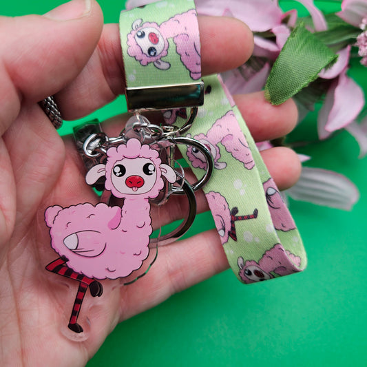 Fleep Keychain/Lanyard (flamingo + sheep)