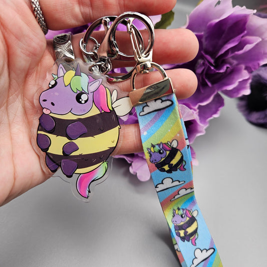 Bumblecorn Keychain/Lanyard (bumble bee + unicorn)