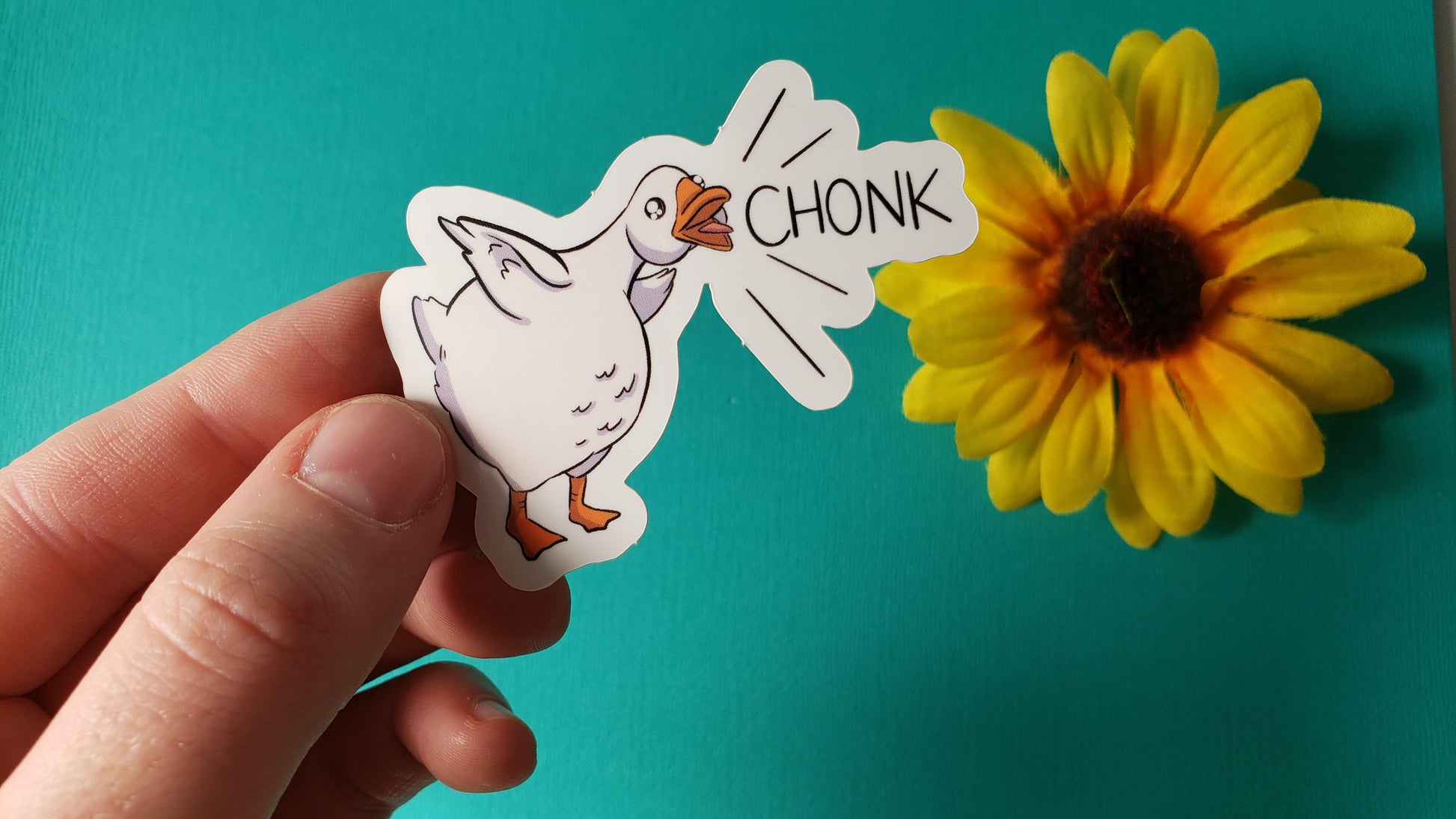 This goose DOES have a title and it's Chonk and they will honk. It's a quack-tastic addition to your sticker sticker collection!