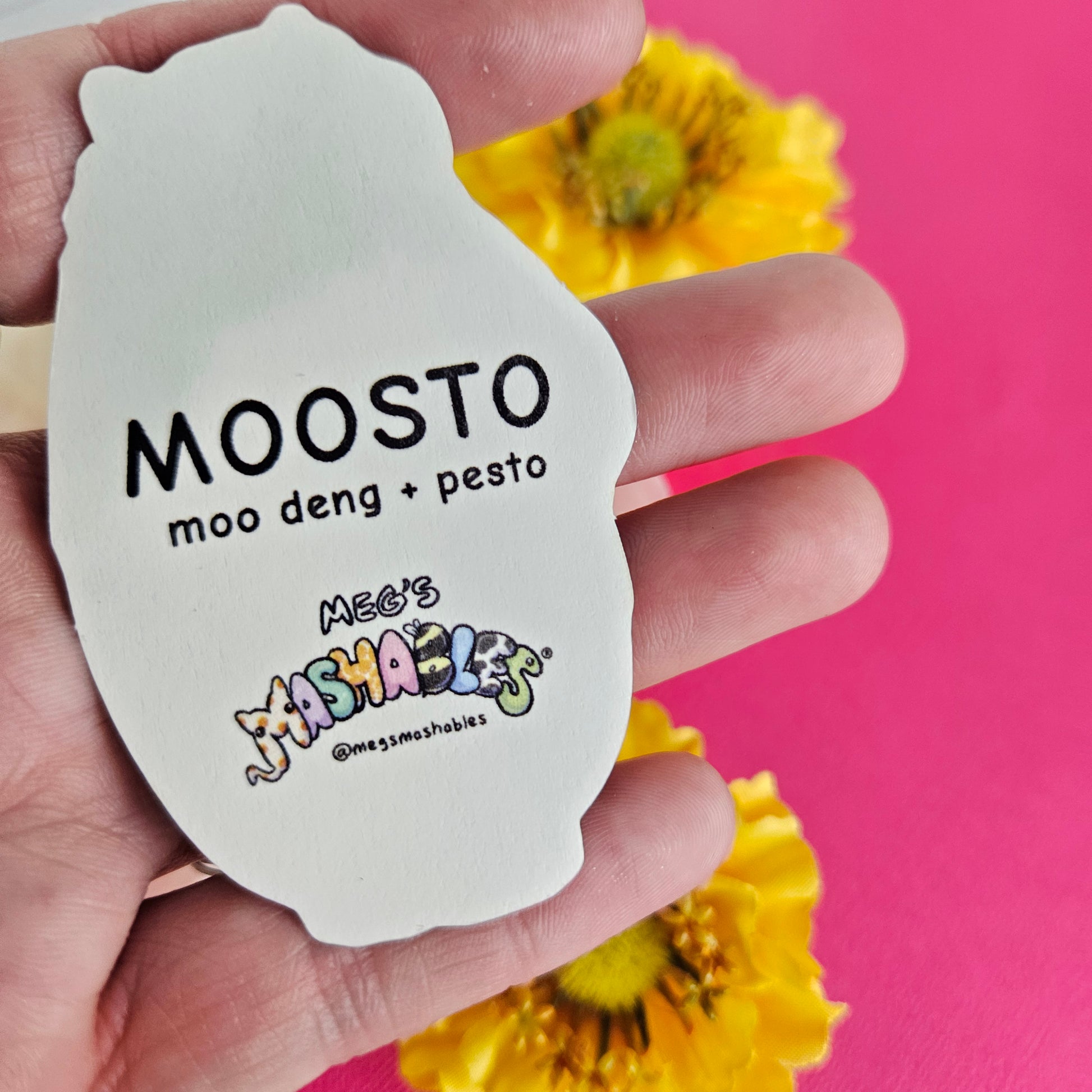 The Moosto sticker mashed internet favs Moo Deng and Pesto the Penguin in a playful design. A must-have for animal lovers, adding fun and flair to any surface.