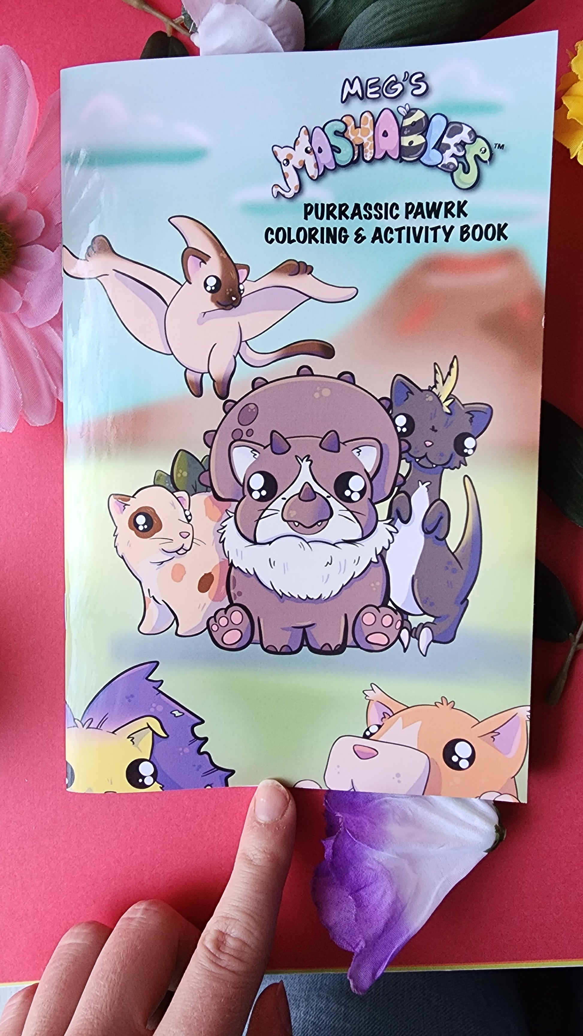 This first-ever Meg's Mashables coloring book is all of its prehistoric cat fun! All six Purrassic Pawrk kitty dinos are in there, as well as fun activities such as "spot the difference" and a word search. There's even a place where you get to make your own Mashable!