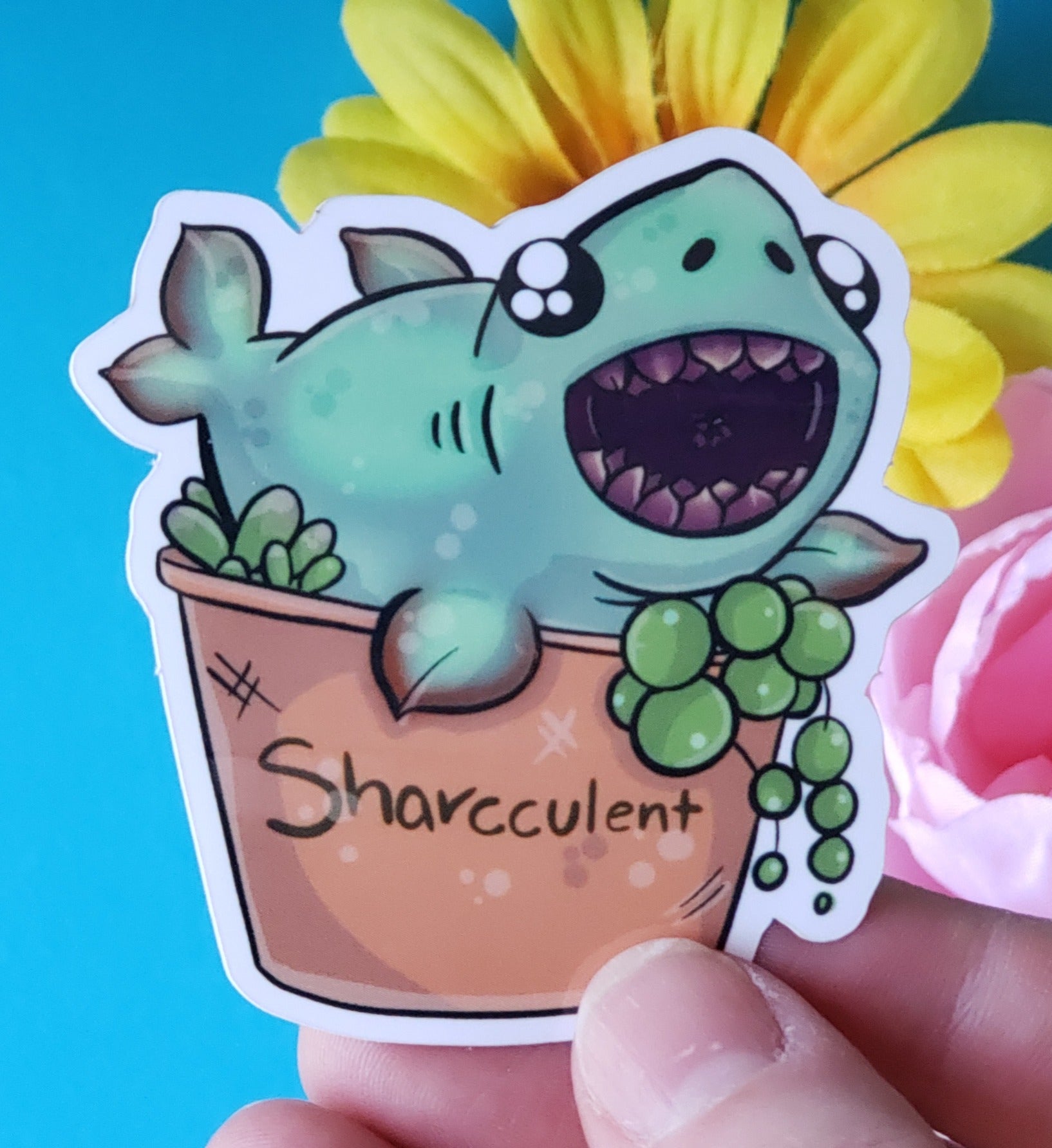 Dive into cuteness with our Sharcculent Sticker, mashing the fierceness of a shark with the charm of a succulent. It's a jaw-some addition to any sticker collection!